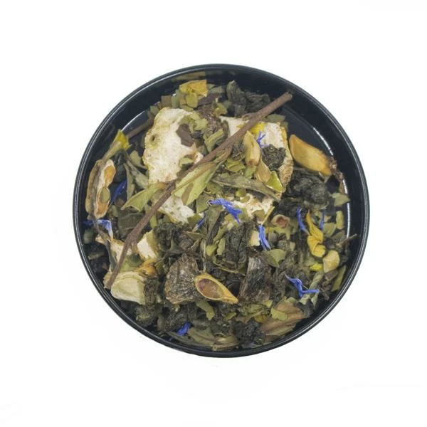 Description This blend was developed to enhance cognitive performance and mental focus. Charged with energizing luxury Oloong, Yerba Mate and White tea with the warmth of Lemon, supports the brain and optimises the ability to concentrate. Ingredients Luxury Oolong Tea, Green Yerba Mate, Lemon Pieces, White Tea, Blue Cornflowers and Sunflowers. Origin China (Fujian Provence & Yunnan Province ), Brazil (Parana), Egypt (Nile Delta), France (Provence) Grown: 500 – 1500ft above sea level Preparation 1 teaspoon for 200ml of 100° Boiling water. Brewing time 3 to 5 minutes. Notes Energising, medium bodied, round citrus and fruity flavours. 120g Caffeine: approx. 20-30mg per cup. Ethically sourced