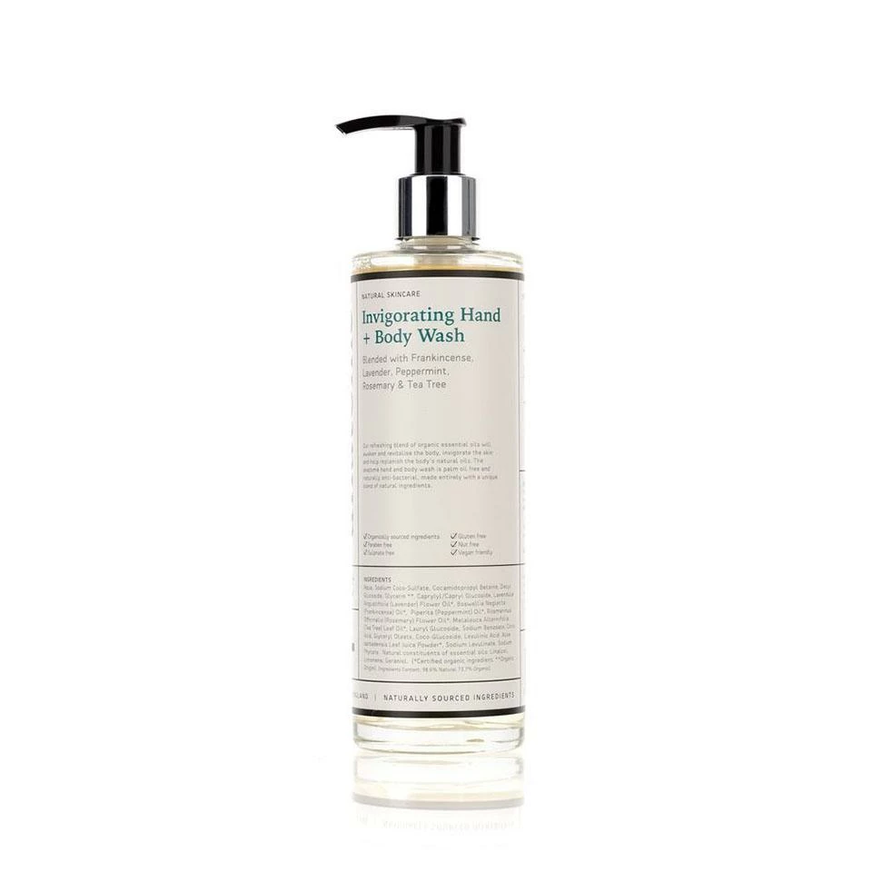 Scented with Lavender, Rosemary and Frankincense, these organic essential oils are gently cleansing, naturally moisturising and nourishing to support the health of the skin. Not everyone finds it easy to feel fresh and awake in the morning, so this hand and body wash is ideal for starting the day with a revitalising shower or bath that cleanses as it awakens the senses. The carefully chosen essential oils help to preserve the skin’s natural moisture balance, including frankincense that restores skin health and combats dryness. Rosemary and tea tree have natural skin cleansing properties without stripping the skin of its natural oils, whilst peppermint is naturally antiseptic and antimicrobial. Finally, lavender helps to calm stressed out skin. For all skin types, even sensitive skin, ideal for use in the morning. 1. Mix with water in your hands or on a body sponge or washcloth, and smooth all over your body in the bath or shower; 2. Then, rinse before moisturising. Ingredients: Potassium sunflowerate*, Potassium cocoate*, glycerin***, Citrus nobilis (Mandarin Orange) peel oil*, Cymbopogon flexuosus (Lemongrass) oil*, Melaleuca alternifolia (Tea Tree) leaf oil*, Potassium chloride, Potassium citrate, Sodium bicarbonate, Citral**, Geraniol**, Linalool**, Limonene**. *Organic ingredient. **Natural constituents of essential oils.*** Organic origin.