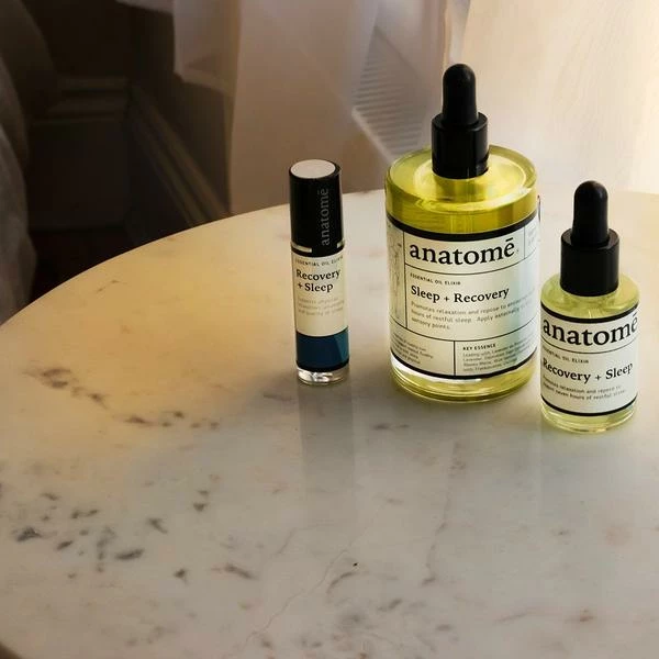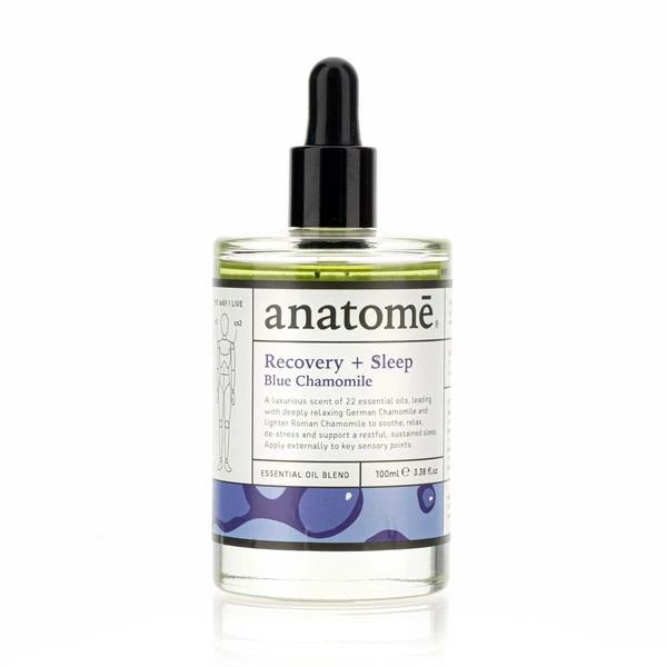 How it works Do you wake up in the middle of the night and therefore struggle to achieve a consistent seven hours of sleep unable to return to sleep. Blue German Chamomile in this oil blend to support insomnia and for individuals facing anxiety and emotional stress causing them to awaken through out the night. At anatomē we focus on the provenance and quality of the ingredients, searching the world for the finest, best performing plant extracts to support your sleep. This rich blend of x22 essential oils that include 3 types of Lavender, Somalian Frankincense, Seaweed and Chamomile supports relaxation with natural sedative and restorative properties to support seven hours of unbroken sleep. Applied externally the blend of essential oils combine to train and support your brain and body to sleep. When to use the sleep oil Apply directly externally to your sensory points (as outlined in our sleep guide you will receive with your purchase). Use 15 minutes before sleep, and after a week you will experience your sleep patterns change and quality of sleep improve. How does do the essential oils work? Essential oils combine together to work in three steps: Relax – unwind the body to initiate sleep Reset – ease the mind to release sleep hormones Recover – through resting the body + mind A recent clinical study shows that Lavender is a natural anxiolytic and can reduce anxiety. Blue German Chamomile and Roman Chamomile are natural sedatives, promoting deep and regular sleep. According to scientists, Chamomile is able to bind to brain receptors that decrease feelings of anxiety and initiate sleep. Frankincense declutters the mind allowing full relaxation. Ingredients Signature ingredients include: Lavender: We use four varieties including Bulgarian, French, English & Himalayan: is deeply relaxing and emotionally supporting. The scent symbolises cleanliness and purity. Known for its therapeutic properties, lavender is commonly used by athletes in their warm-up and pre-competition preparations. Chamomile: has historically been used to induce and accelerate sleep. It is highly valued in medicine. Clary Sage: is powerfully relaxing. Renowned for its energising effects on the body and mind, it holds invaluable properties for soothing pre-match or workplace challenges. Rose: Complementing the properties of Lavender and Sage, Rose provides emotional support and soothes everyday stresses and strains. It is said to have the highest vibrational frequency of any other oil possessing vibrant emotional benefits and spiritual healing. Sacred Frankincense: A relaxing and meditative oil, it encourages feelings of calm and soothes the mind. Balsamic and sweet in nature, this oil tones and clarifies the mind and sensory pathways. Melissa Oil: Known as lemon balm oil, this oil is used in almost all balms due to its soothing properties and sweet aroma. The a+ Sleep Oil Composition Leading with: Blue German Chamomile, Lavender de Provence, Dalmatian Sage Centred with: Rose Absolute Maroc, Cornish Lavender Grounded with: English Peppermint, Somalian Frankincense Carrier Oil: Coconut Oil How to use use Apply the oil externally topically to the body on key sensory points, 15 minutes before sleep. The key sensory points include ears, neck and sole of feet – these are areas rich in innervation that will help the body relax. Use every night for one week to get the full benefits of improved sleep, apply during the night when you awaken. For muscle recovery, apply directly to the muscles until absorbed. Diffuser: Apply 2 to 5 drops in the diffuser 15 minutes before going to bed. Bath: 4 to 6 drops of the oil. Relax for 30 minutes