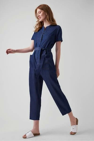 Step into spring in style in the Core Chambray Jumpsuit. Designed with a loose fit, reminiscent of the classic jumpsuit, the denim all in one features a round collarless neck, button front fastening, short sleeves and tapered legs, allowing you to style it with ease to off-duty days. Finish your look with trainers, or layer over a turtleneck and boots to stay stylish in cooler climes. JGQAJ