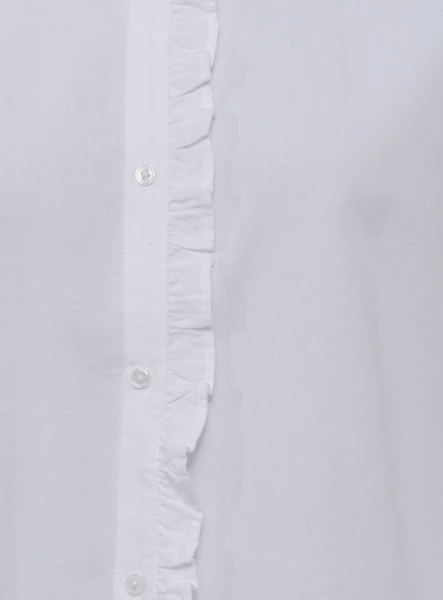 For an easy seasonal update try the Chambray Oxford Shirt. Designed with eye-catching ruffle detailing the shirt creates a classic yet feminine aesthetic. Cut in a relaxed fit with long sleeves and a high round neckline the pretty shirt works as hard as you providing a new approach to the classic white shirt. Complete your look with denim or tailoring.