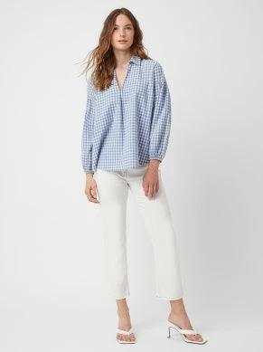 The Classic Gingham Popover shirt is an essential for the season. A relaxed piece fitfrom work to the weekend. the light cotton pop-over shirt has cropped sleeves a pointcollar and a casual form-skimming fit creating an easy fuss-free piece you can pair with slim fit trousers denim or summer culottes. Comes in two summery colours Riviera Blue and Clay made with Eco Cotton. 100% ORGANIC COTTON J2SAQ