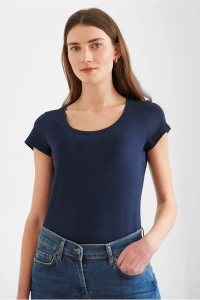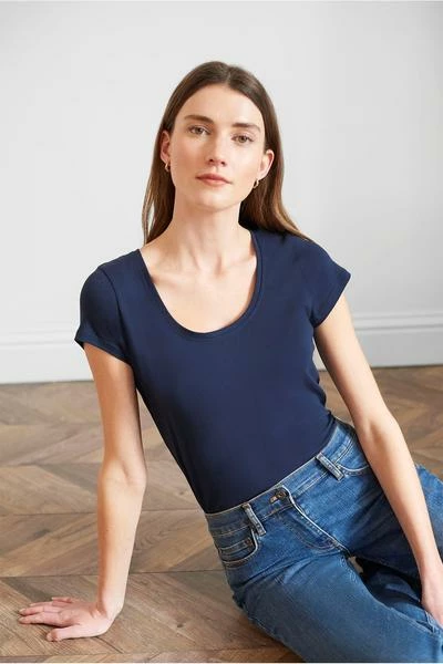 Even the simplest of separates deserve a stylish edge. With short sleeves and a scoop neck, this cotton t-shirt from the Essentials collection will be your new throw-on-and-go favourite. T-shirt Fabric: smooth, soft, slight stretch Scoop neck Short sleeves Slim fit Style code – j60za 95% Cotton 5% Elastane Machine wash cold