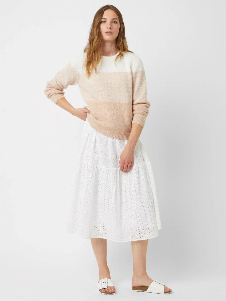 The Ombre Knit from Great Plains boasts a modern colour block design that will brighten up any occasion. Knitted from a feather-light fabric blend, it’s an ideal wardrobe staple for transitioning into spring. Finished with a classic crew neck cut and long sleeves. 52% Viscose 26% Polyester 22% Nylon Colour block knit with crew neckline Long sleeves Relaxed fit Machine wash cold Model is 5’10” and is wearing a UK size 8