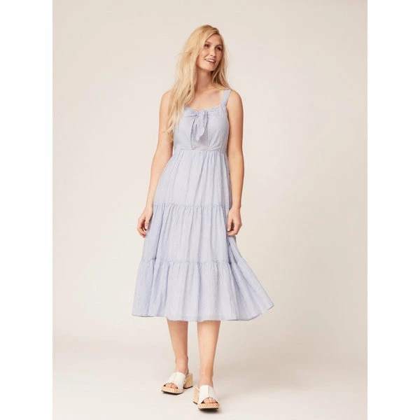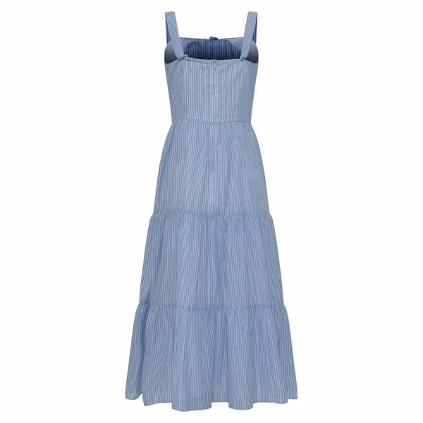 For proof of why stripes are a summer staple, look no further than the Tia Stripe Tiered Dress. With feminine charm and a classic nautical inspired pattern the dress brings the effortless and the pretty together. Featuring an alluring keyhole detail sleeveless with flowing fit. This dress pairs perfectly with sandals and trainers for easy off-duty days. 100% ORGANIC COTTON COLOUR: SKY BLUE- MILK J1SCI