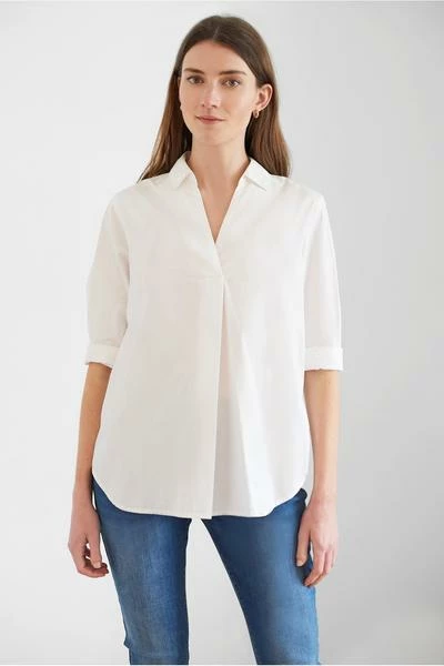 A relaxed piece fit for work to the weekend. The light cotton pop-over shirt has cropped sleeves, a point collar, and a casual form-skimming fit, creating an easy fuss-free piece you can pair with slim fit trousers, denim or summer culottes. This garment has been made from organic cotton. This shirt is made with 100% organic cotton yarn which has been certified by the global organic textile standard. Shirt Fabric: smooth, crisp, cotton Point collar 3/4 length sleeves Open placket Relaxed fit UK size S length is 69cm Style code – j20za Our model is 5ft10″ and is wearing a UK size 8 Style code – j2qbc 100% Organic Cotton Machine wash cold