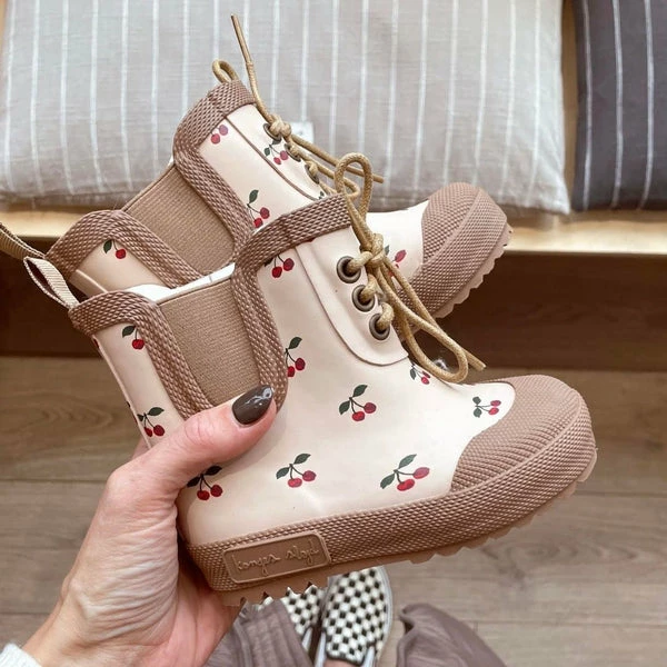 Konges Sløjd: Thermo Boots – Cherry Blush. Go jump the puddles in these wonderful thermo boots. They will keep your little ones dry throughout the rainy days. The boots are lined to keep the little happy feet warm and have an extra layer in the front for a more solid boot. Made in natural rubber. See the rest of our Konges Sløjd collection here.